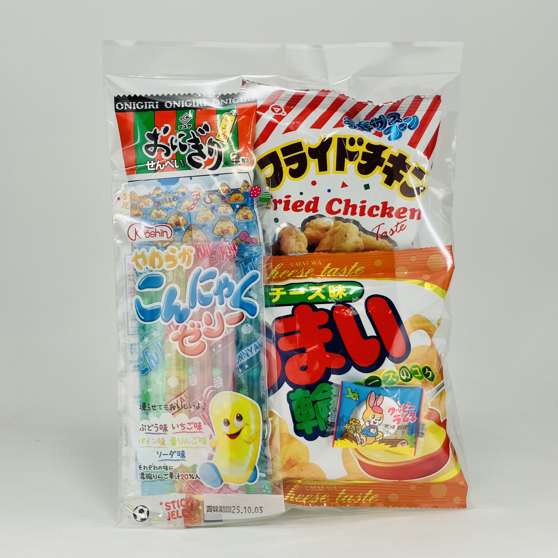 こんにゃくゼリーが入った夏祭り向けの袋詰めです。お手頃サイズに仕上げました。
